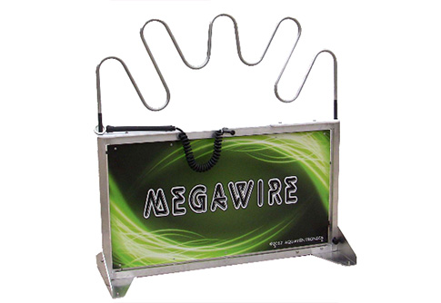 | Size DOES Matter! Megawire is the ultimate test of patience, whole body steadiness, and hand-eye coordination. Watch while players attempt to navigate the handheld ring through 12 linear feet of tube on this massive 4 feet tall by 4 feet wide game. Should they loose their concentration and make a mistake, the red light will turn on along with an audible buzzer. Add a second optional wand ring, and change between the two wand sizes for different skill levels. Runs off the included 12V rechargeable power pack. |